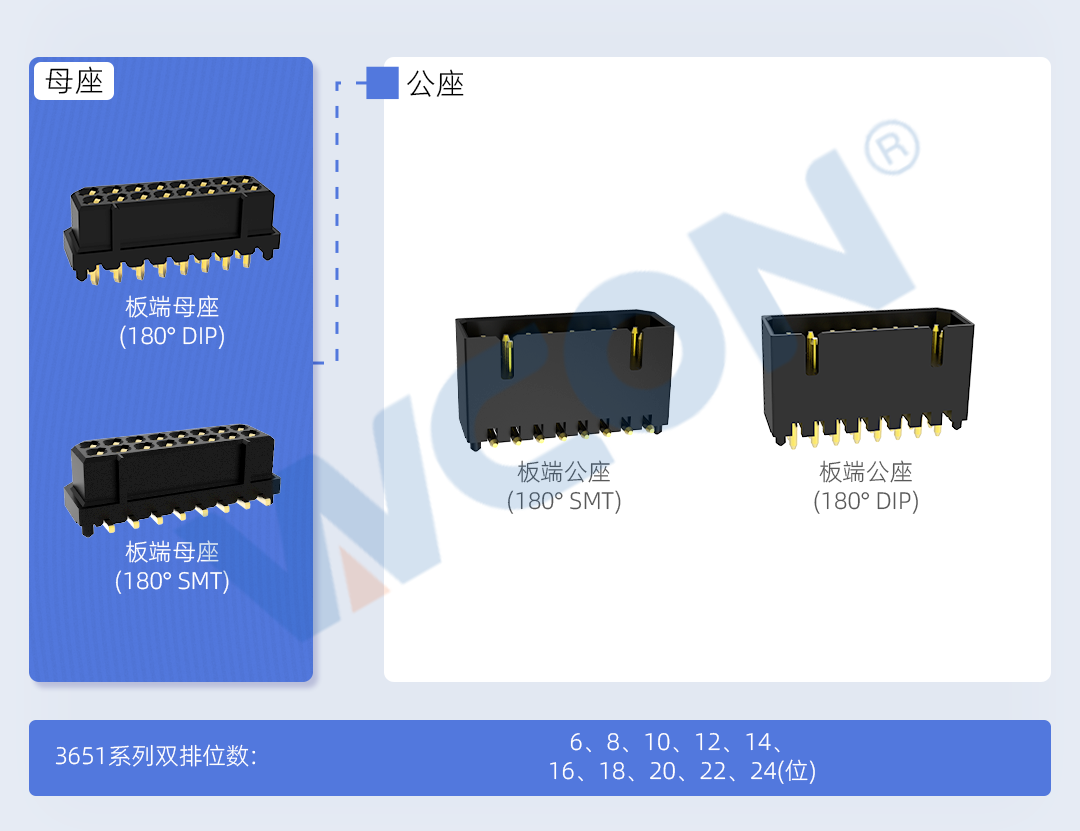 隨著智能制造發展的不斷深入,設備、機器、系統之間的互聯互通需求越來越大。這一趨勢導致對工業連接器的性能、可靠性和集成度提出了更高的要求。WCON Electronics 的 3651 系列板對板連接器間距為 1.25 毫米,可滿足工業和醫療設備對小型化、集成化和高速性能的高要求,同時還能適應緊湊的設計空間。