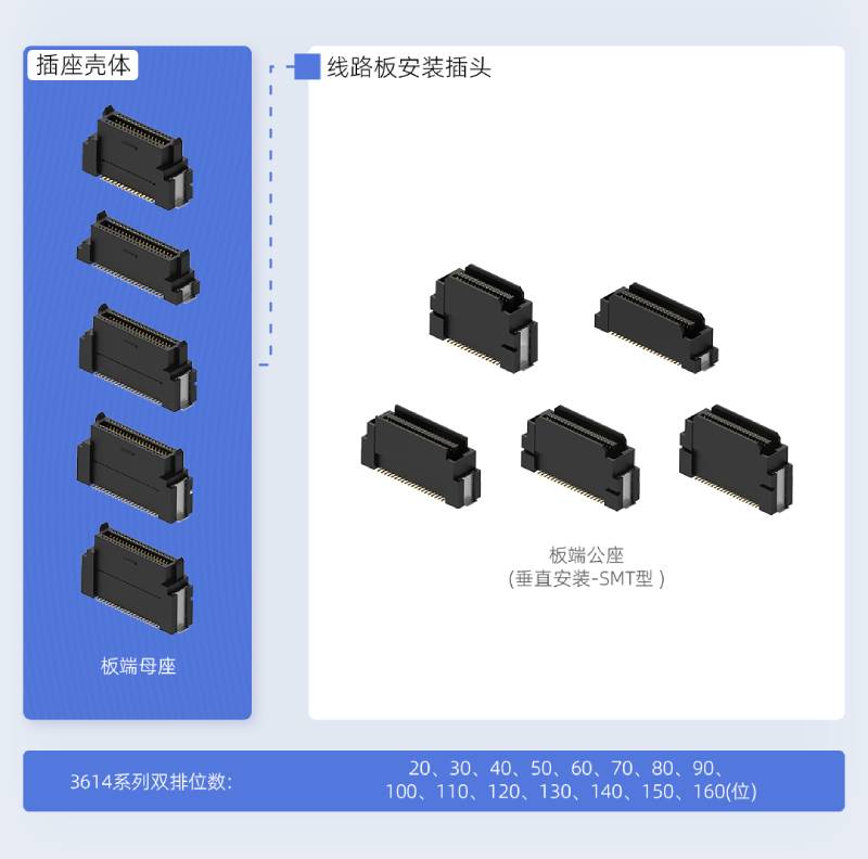 3614系列精密板對板連接器 嚴格按照 EIA-364等行業標準進行設計、制造和測試,確保每個連接器都符合世界一流的質量水平。我們致力于為客戶提供高性能、高可靠性的連接解決方案,幫助他們在競爭激烈的市場中脫穎而出。